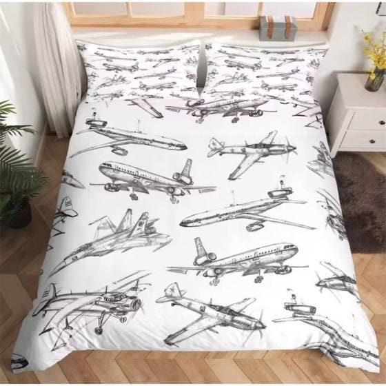 Exclusively designed for Sporty’s Aviation Gifts, our Aviation Bedding sets were inspired by the timeless beauty of aviation, blending the comfort of first class flying with stylish aviation designs. Perfect for the home of any pilot, aviation enthusiast, or anyone who dreams of being a pilot one day. Each bed set features two matching pillowcases, bed sheet, a lightweight top duvet sheet and a matching throw blanket made of 100% polyester. Bed sheets are 90gsm and are wrinkle resistant. Bed sets are available in twin, queen or king sizes, please specify size. Whether you're updating a guest room, decorating a pilot’s retreat, or simply adding a personal touch to your bedroom, this set brings a quiet sense of adventure to your everyday space. It’s more than bedding — it’s where your love of flight meets home comfort.