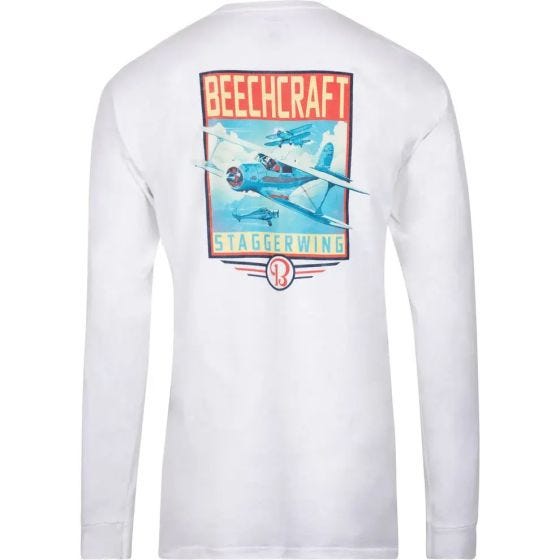 This premium, vintage-inspired shirt honors the iconic Beechcraft Staggerwing aircraft, blending aviation heritage with modern comfort and style. The detailed screen printed artwork on the back showcases the aircraft's striking elegance, appealing to pilots, aviation historians, and collectors of aviation memorabilia alike. The Beechcraft logo appears on the front. Crafted from premium-quality 100% cotton, shirt is available in sizes SM-XL.