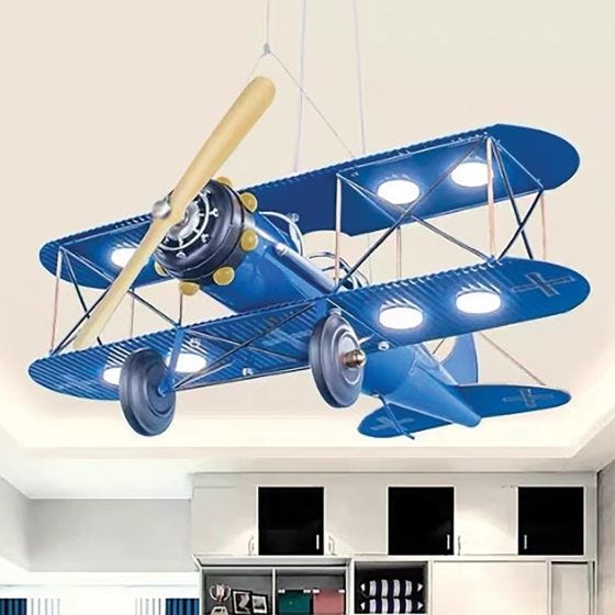 Illuminate any space with our LED Biplane Light! This unique fixture features 8 radiant bulbs and an adjustable metal wire design, making installation a breeze. Suspended by sturdy steel wire and durable inserts, it showcases vibrant blue paint on an all-metal surface, complete with authentic 20th-century biplane details. Perfect for aviation enthusiasts, this eye-catching piece adds character to any room, office, or hangar, blending style with a nod to aviation history. Measures 27”l x 11”h with a 25.5” wingspan. Includes up to 42” of steel wire for hanging and universal power plug that operates on 85–265-volt AC power at 50 or 60hz frequency. Requires simple assembly and includes an easy to follow instruction manual.