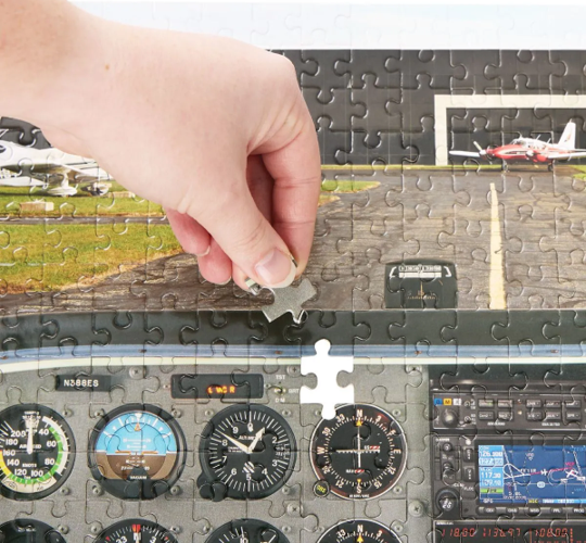 Experience the Cessna 172 cockpit and the atmosphere of a classic general aviation airport—all from the comfort of your table. The Cessna 172R Cockpit Puzzle is available for just $19.99 at Sportys.com.