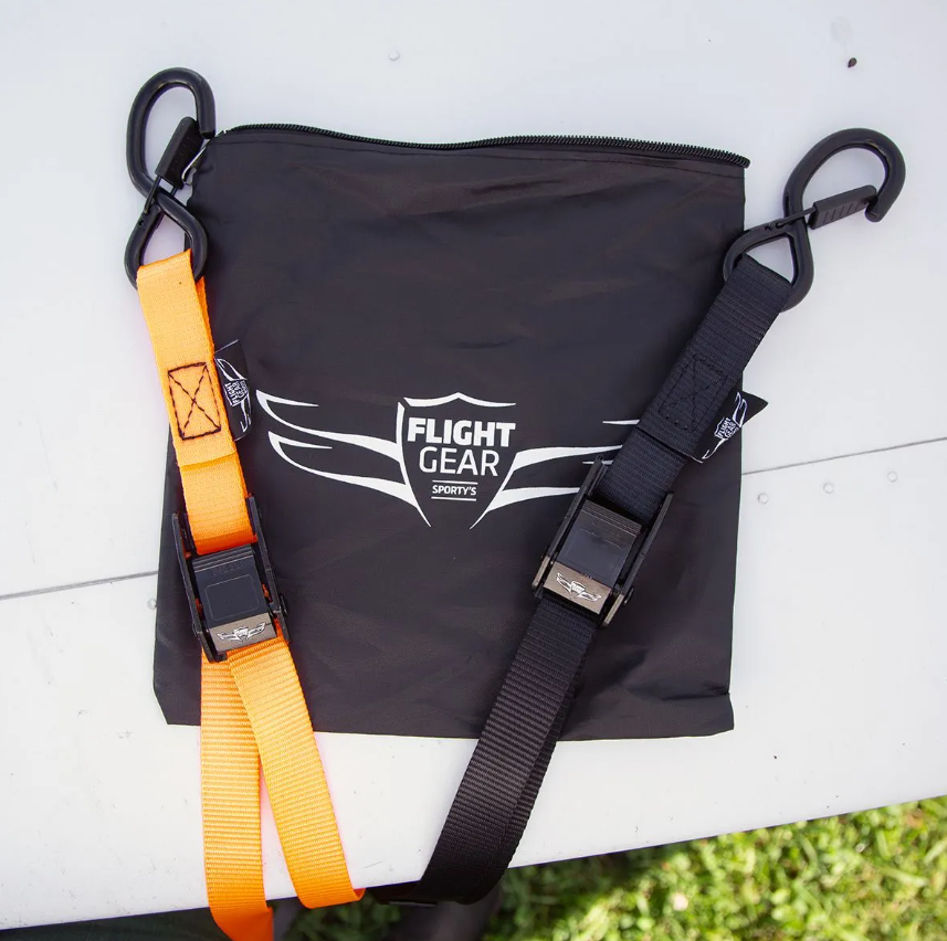 The Flight Gear All-Weather Tie-Down system is designed for pilots who prefer quick-attach straps with secure cam buckles.