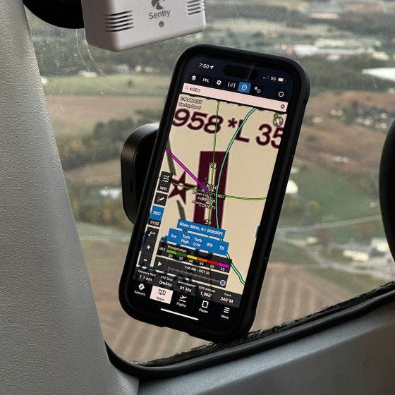 Designed for the cockpit, this mount is built for one-hand operation. This is a lifesaver when the workload picks up on approach. The MagSafe base with 18 rare-earth magnets keeps your tablet or phone locked down tight, even in bumps and turbulence. With its full 360° swivel and adjustable tilt, you can set your screen exactly where you need it for charts, checklists, or ADS-B traffic. Flying without MagSafe technology? No problem—the included adhesive-backed metal ring makes any device cockpit-ready. We advise only using tablets similar in size to an iPad mini.