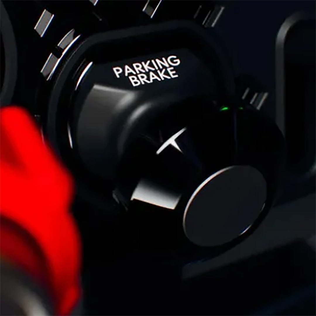 Get the airplane rolling with a parking brake release button. Gone are the days of trying to find the digital parking brake while we're full throttle on the runway center line.