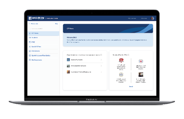 Sporty’s free CFI Portal gives you and your instructors powerful tools to track student progress, identify weak areas, and boost efficiency. It includes ground lesson planning guides, free access to our Learn to Fly, Instrument, and Commercial courses, a free FIRC, and more.