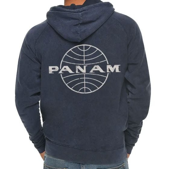 - Features the retro Pan American Airlines logo printed large on the back and smaller on the front left chest.