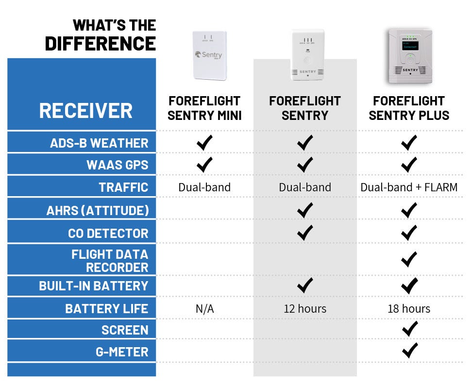 Sentry has a dual-band ADS-B receiver, so you’ll see traffic both directly from other aircraft equipped with ADS-B Out (air-to-air transmission) and from ground stations (TIS-B traffic broadcasts).