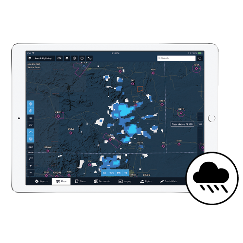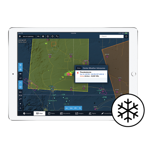 Sentry Plus receives all the weather products transmitted by the FAA, including newer options like icing forecasts and cloud tops—and there is no monthly subscription for weather. As long as you’re within range of a ground station (usually 500 to 1,000 feet AGL), everything is regularly refreshed. ForeFlight makes it easy to overlay multiple weather graphics on your route of flight, so you can make informed decisions and stay safe.