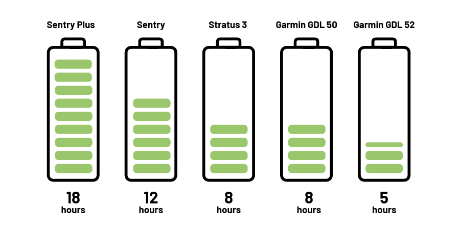 With up to 18 hours of use on a single charge, Sentry Plus is the undisputed leader in battery life—it will last for an entire weekend of flying and still have a reserve. It can also be recharged by smart-charging plugs, including Power Delivery. A new auto power on/off option is a great option for pilots who want to build a Sentry Plus into an experimental airplane panel or mount it out of arm’s reach.