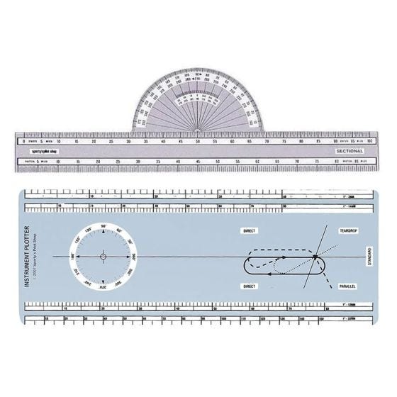 After many hours of use, we have found these to be the easiest plotters to use while in flight. Sporty’s has found the perfect material for plotters. Carries a lifetime guarantee—if it breaks, warps or melts from the sun, we’ll replace it free of charge. Sectional plotter measures 13 1/2" long; instrument plotter measures 8" long.